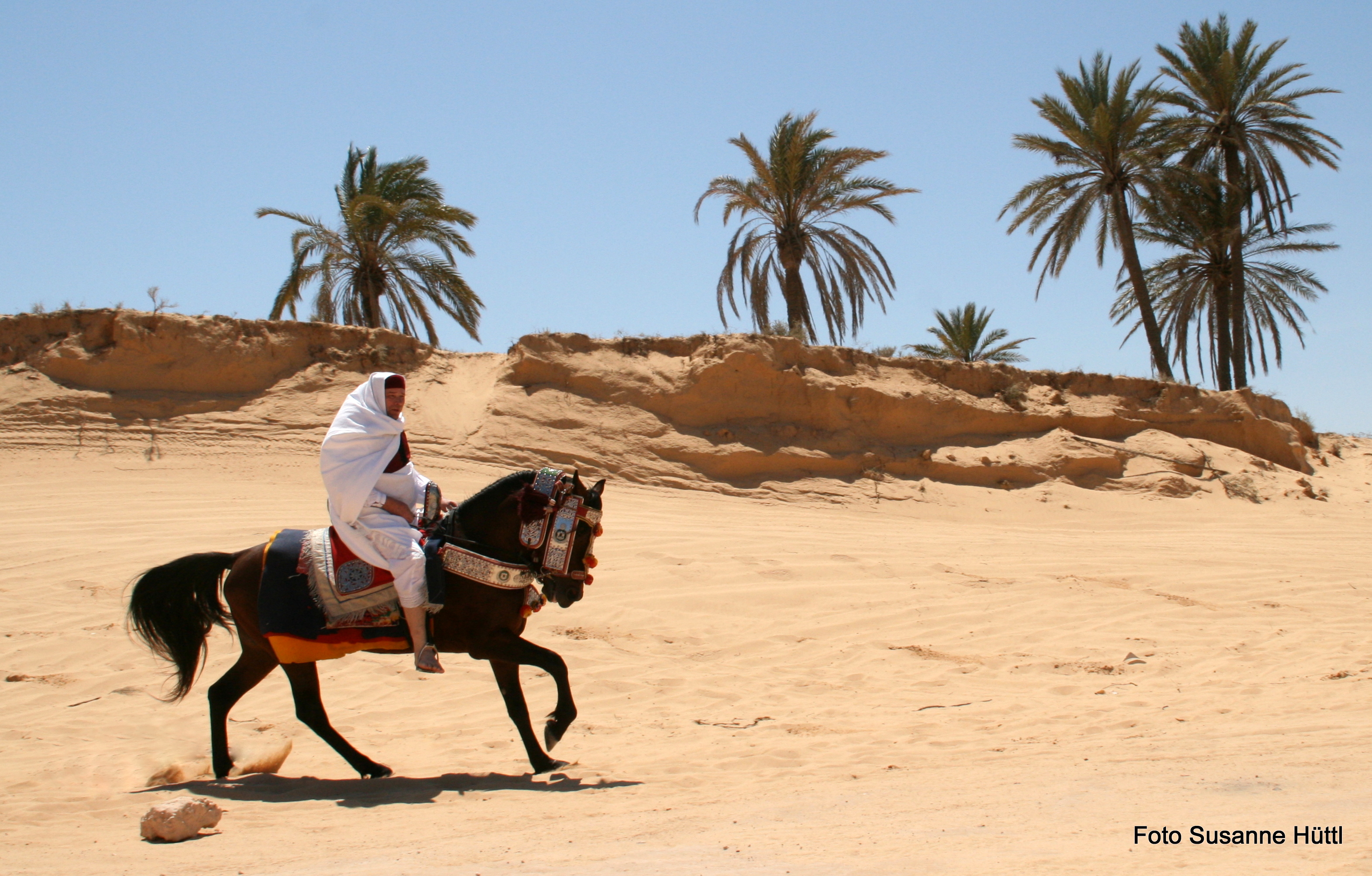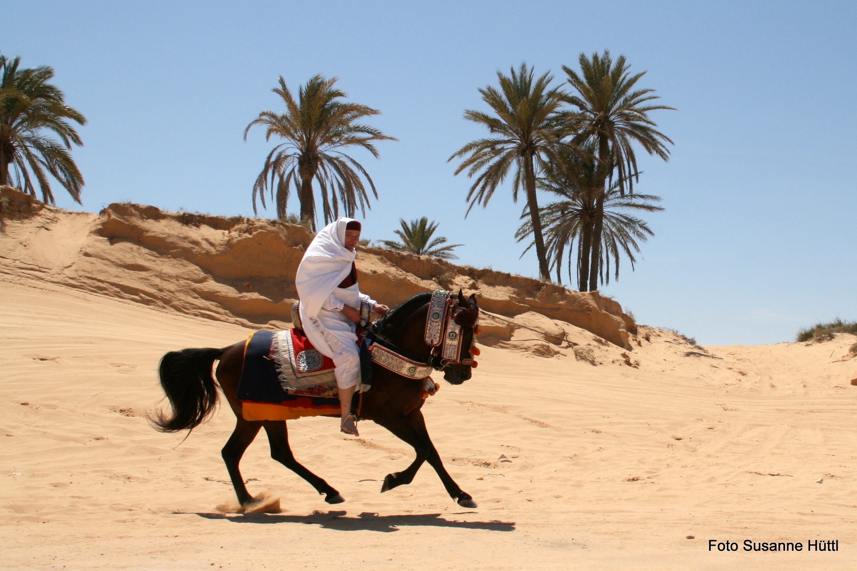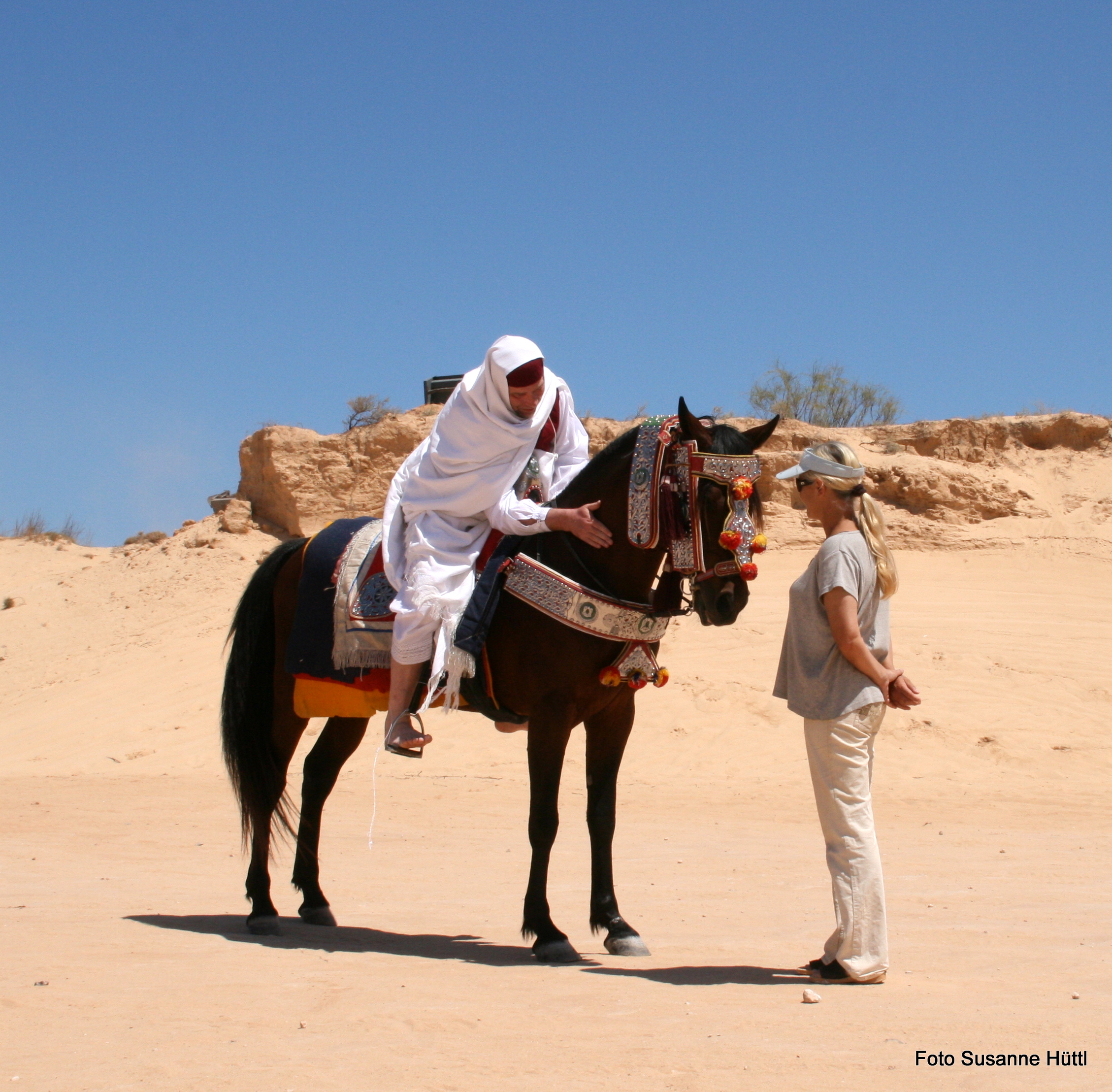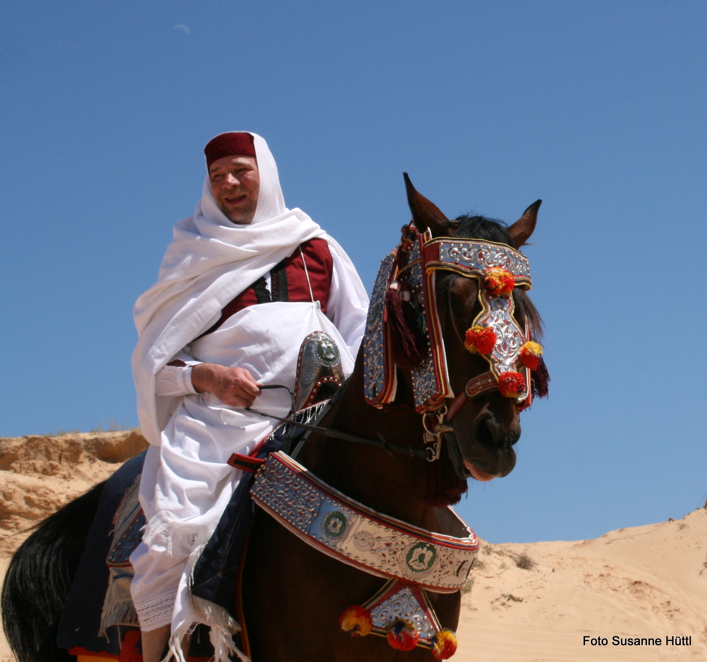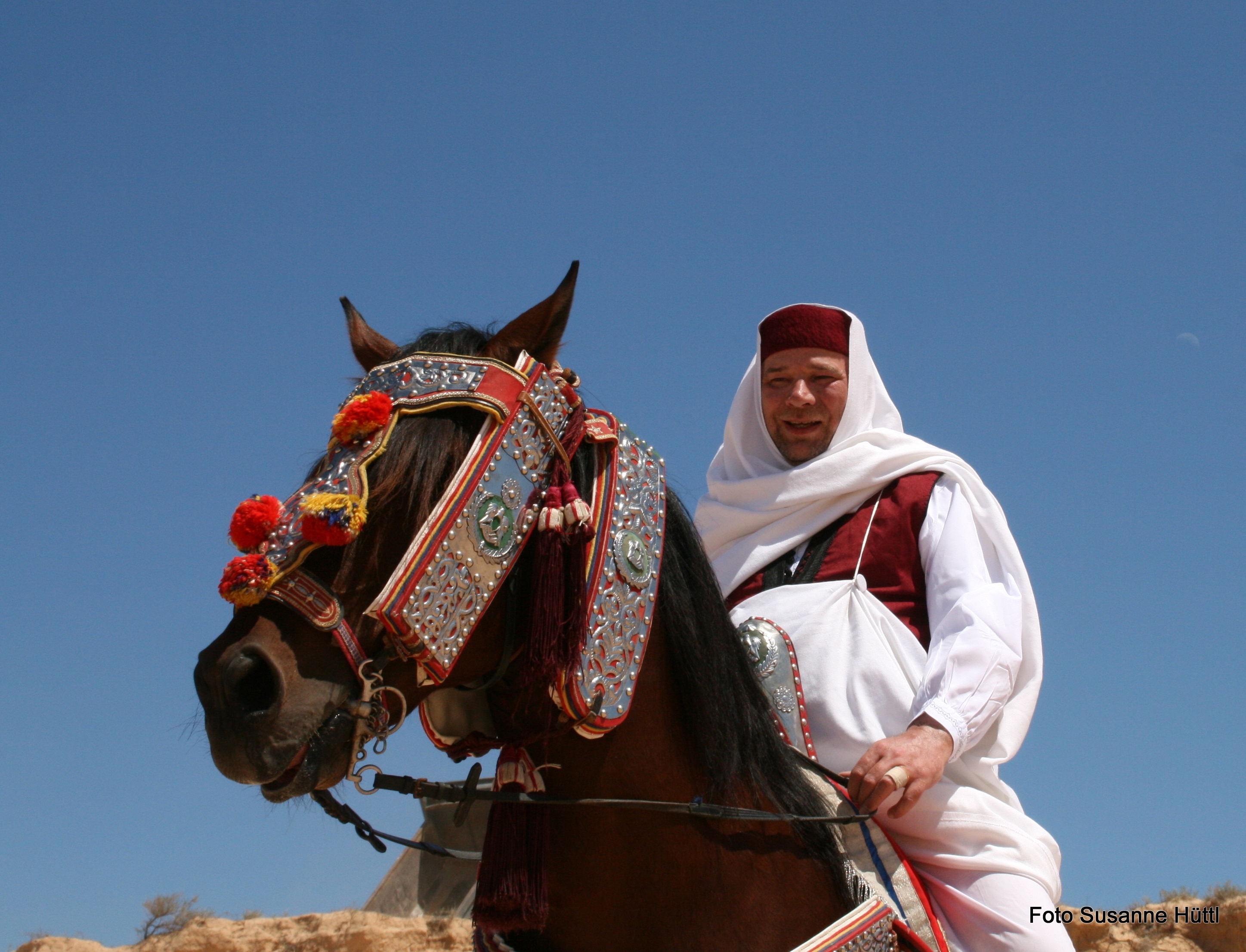 Alles ist hier authentisch: Sattel, Schmuck, Kleidung... und nicht zu vergessen: Berberhengst Bruce.