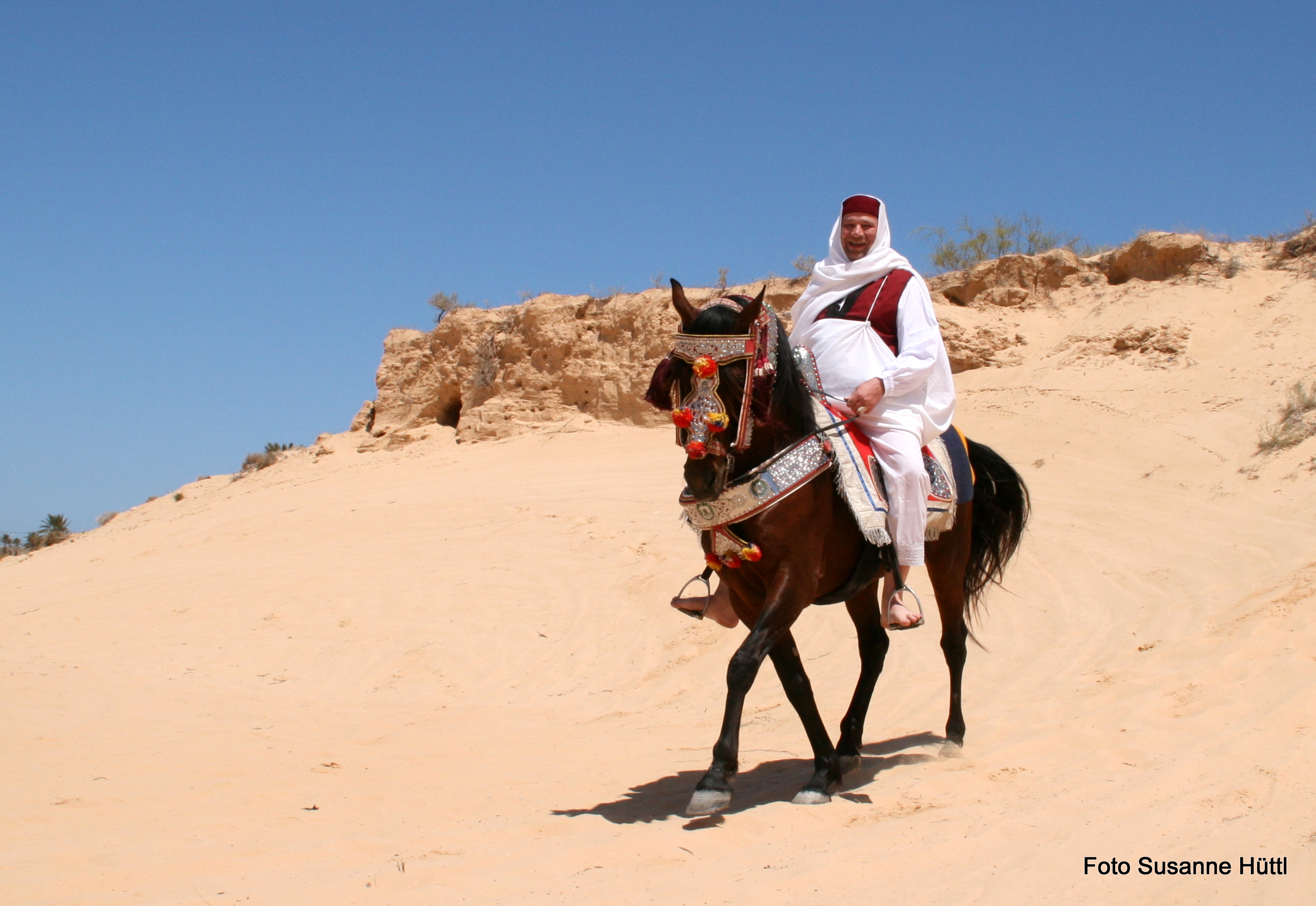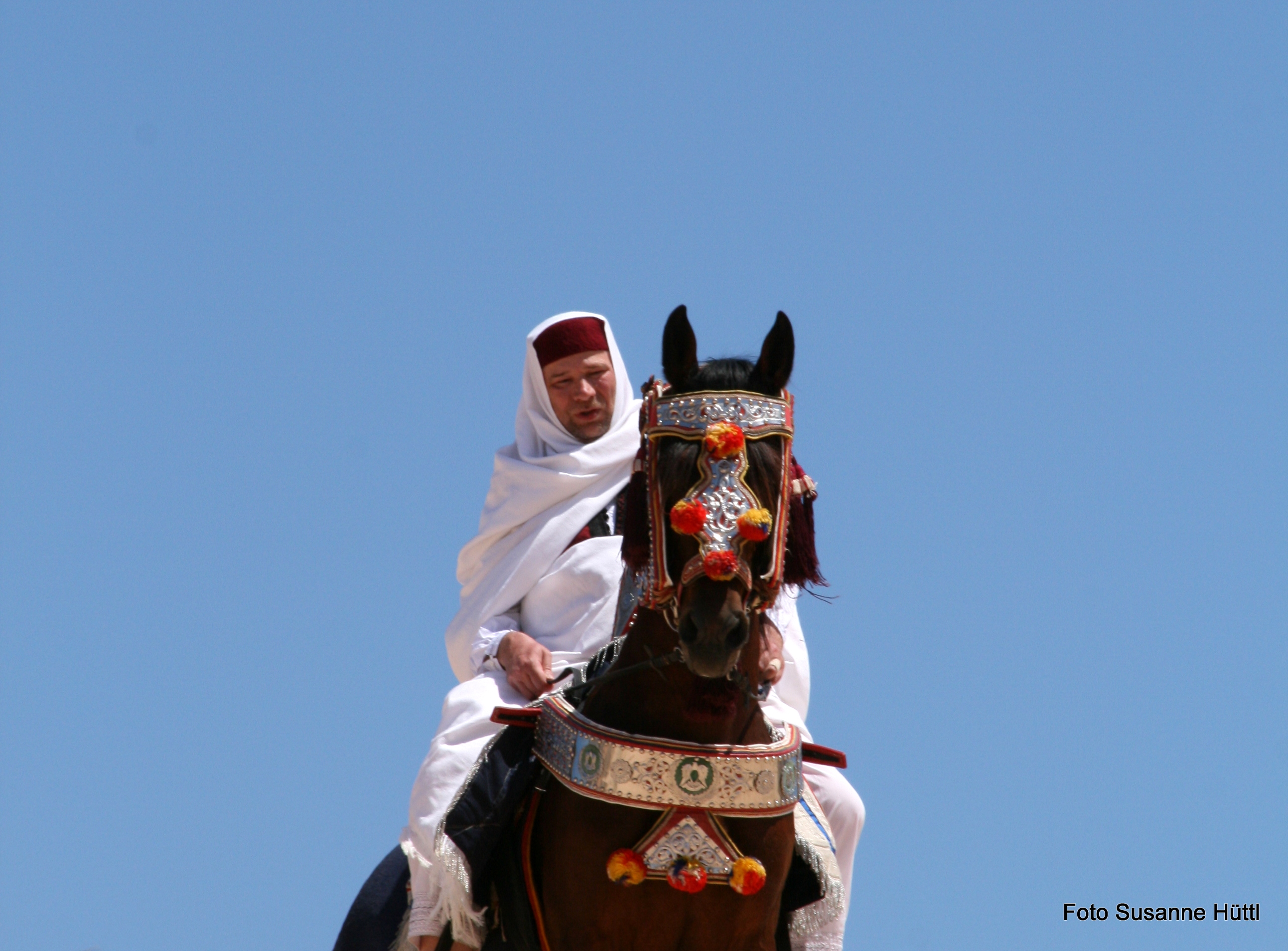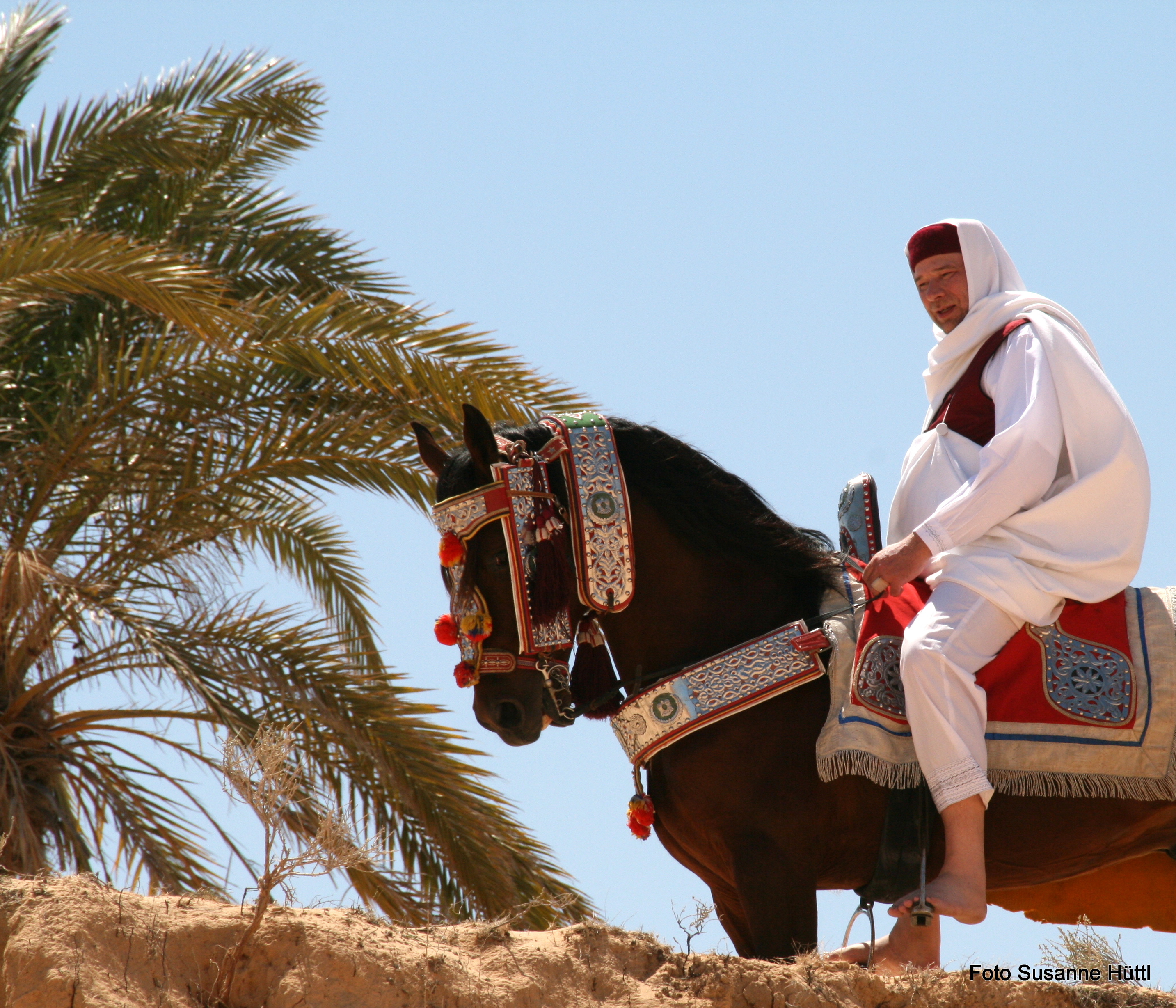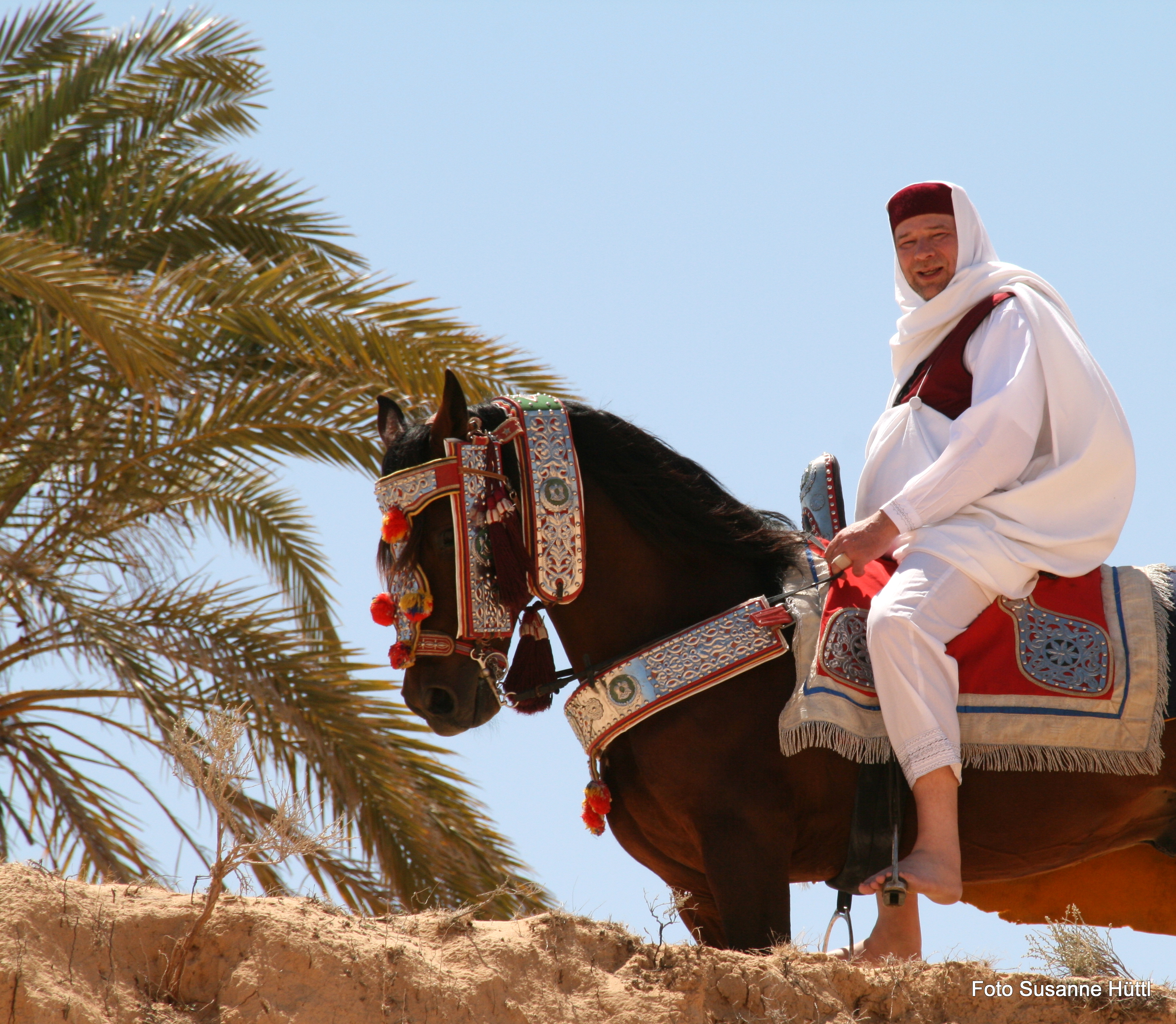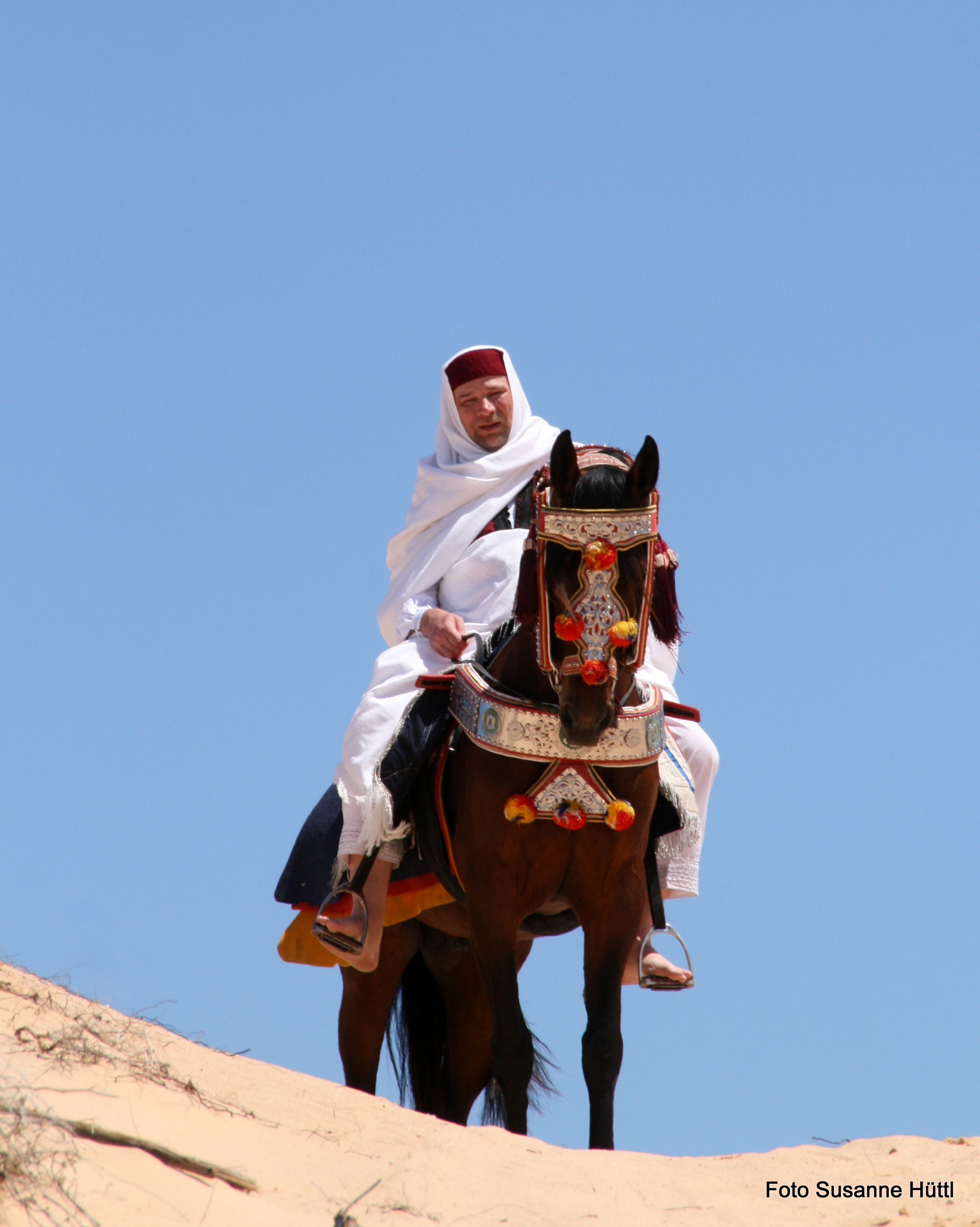 Alles ist hier authentisch: Sattel, Schmuck, Kleidung... und nicht zu vergessen: Berberhengst Bruce.