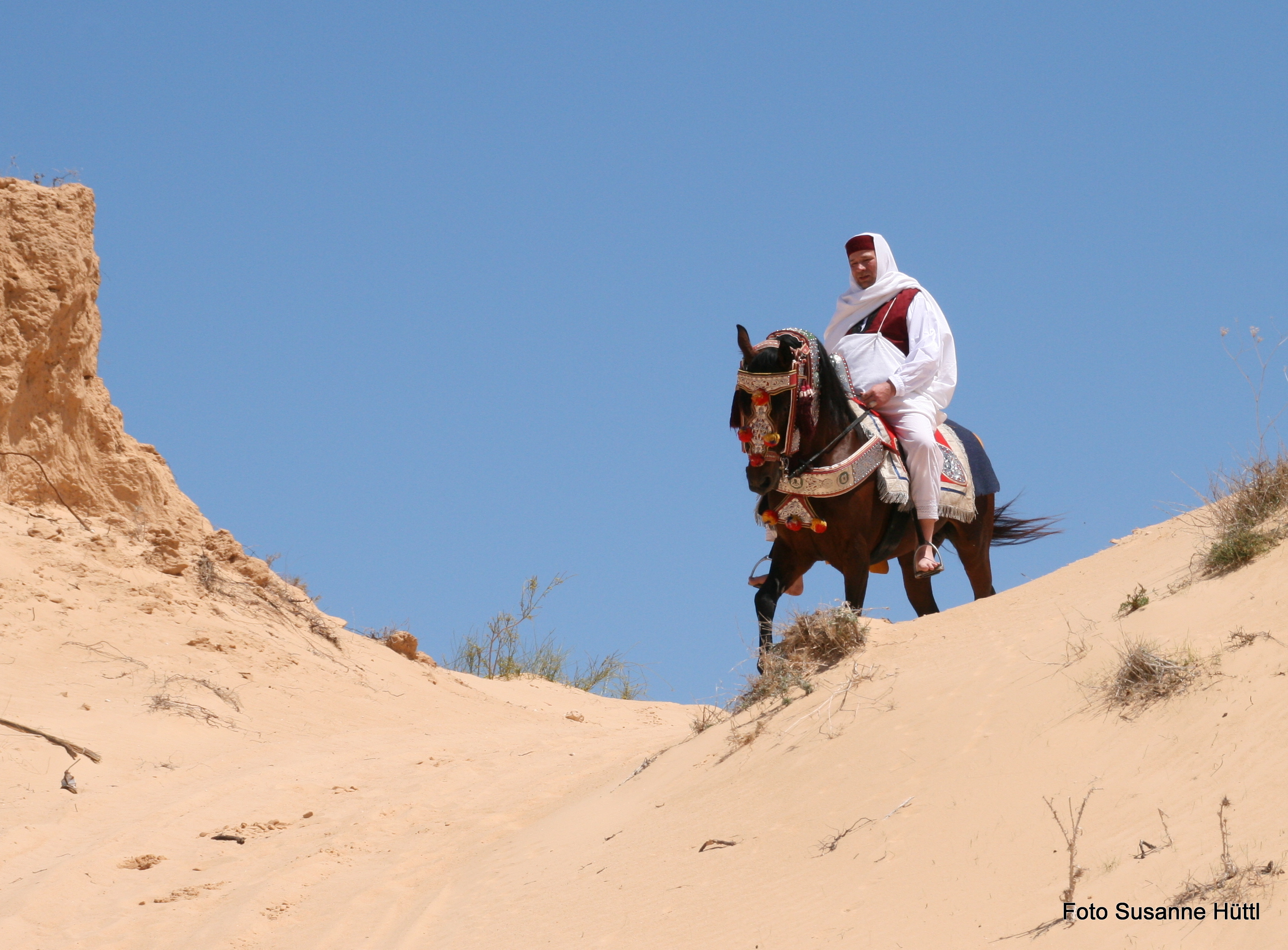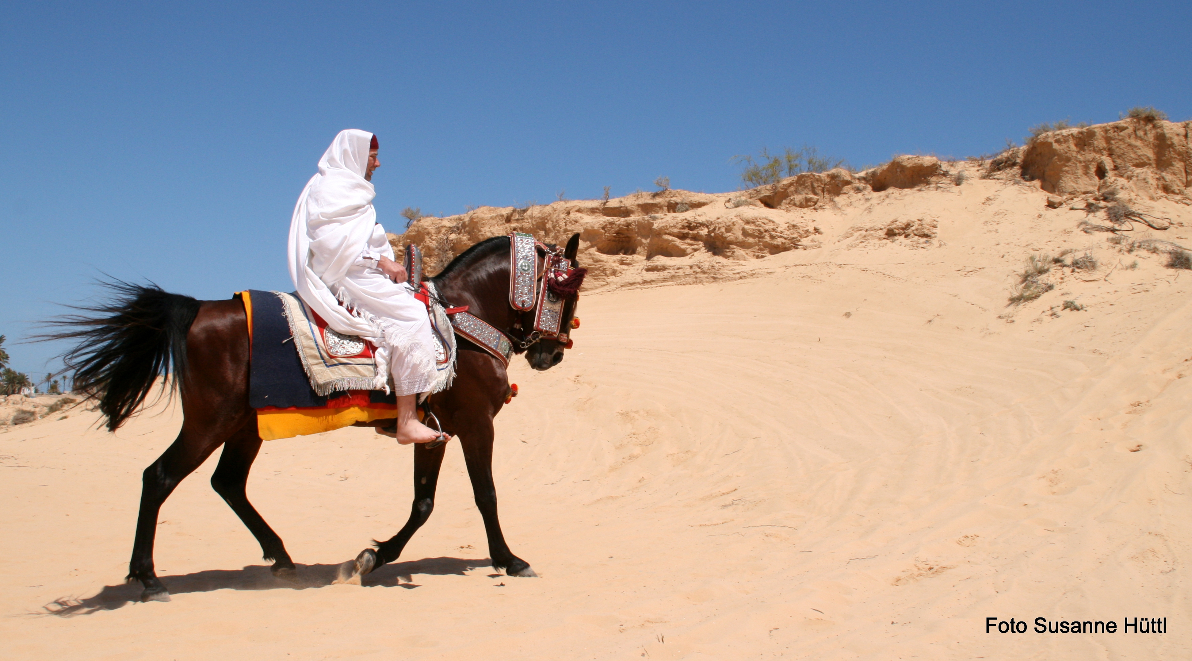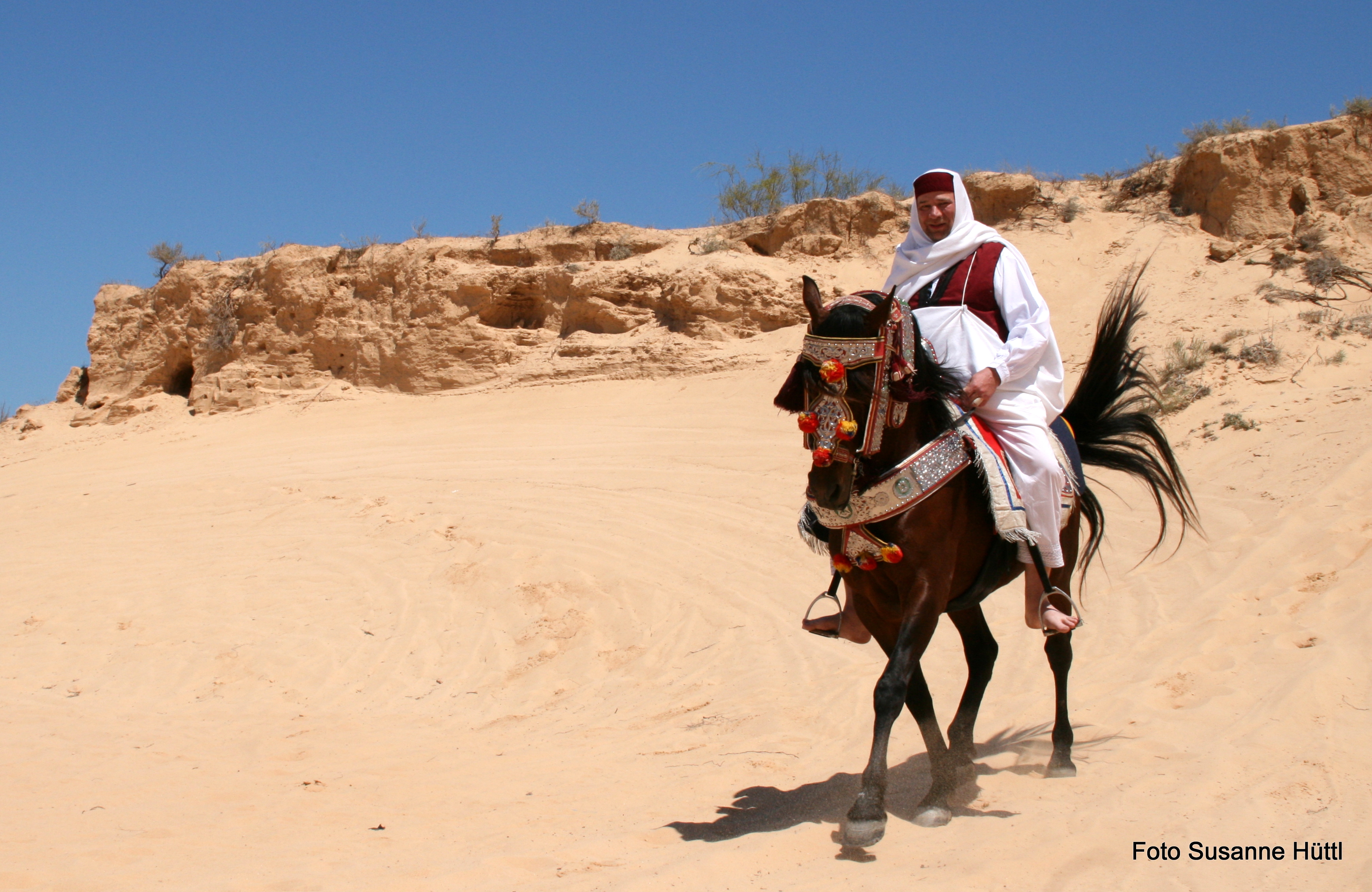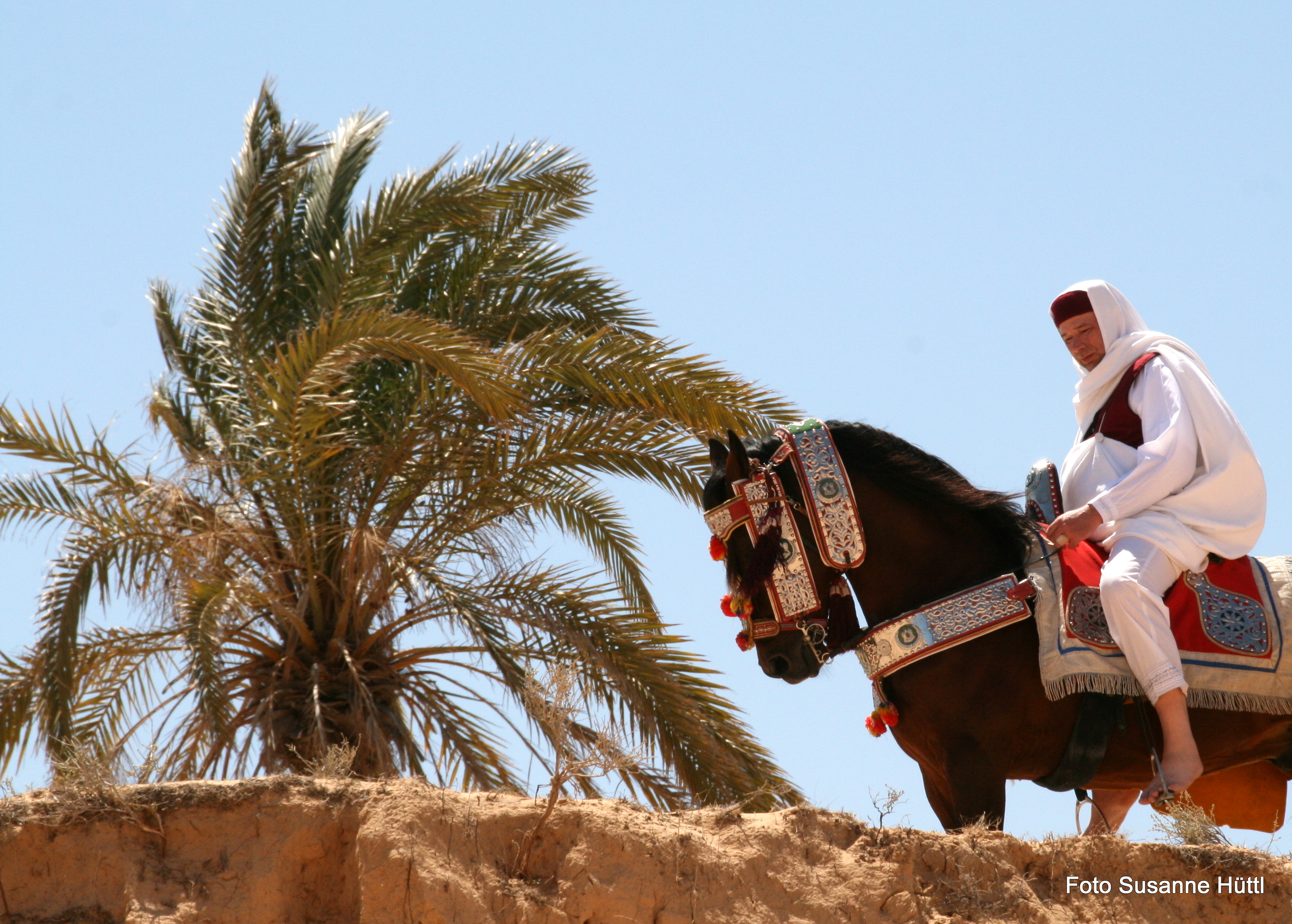 Alles ist hier authentisch: Sattel, Schmuck, Kleidung... und nicht zu vergessen: Berberhengst Bruce.