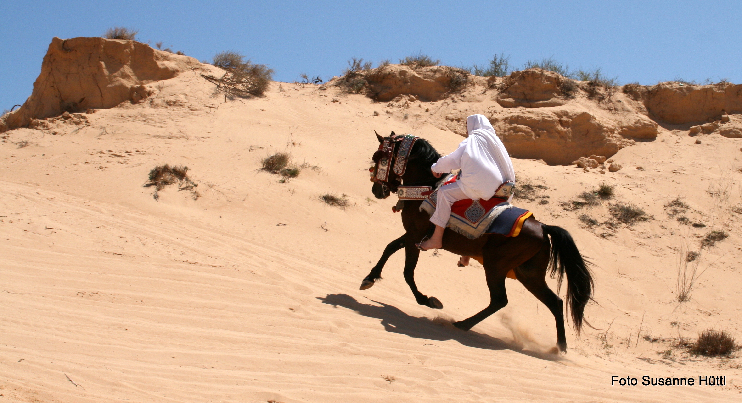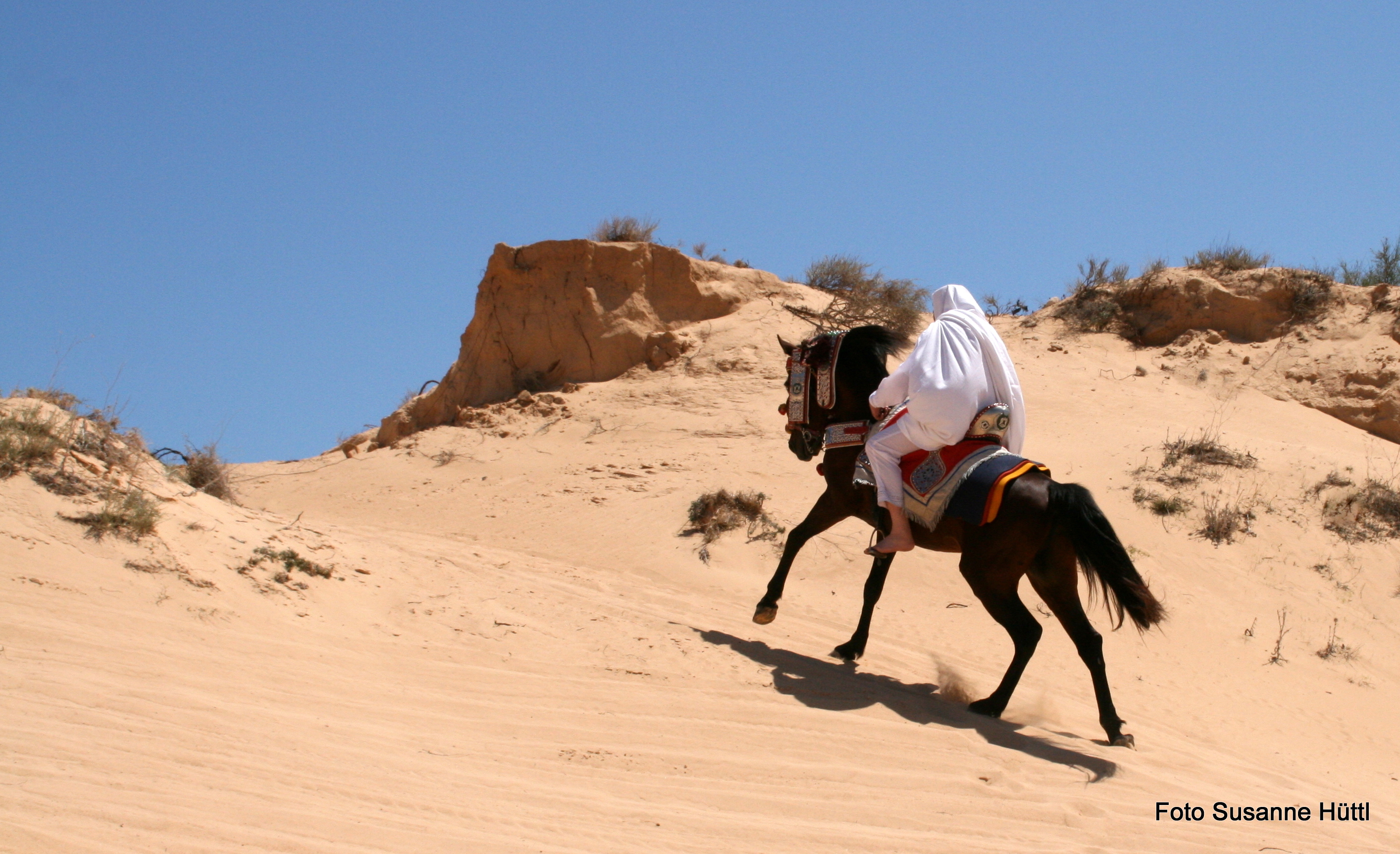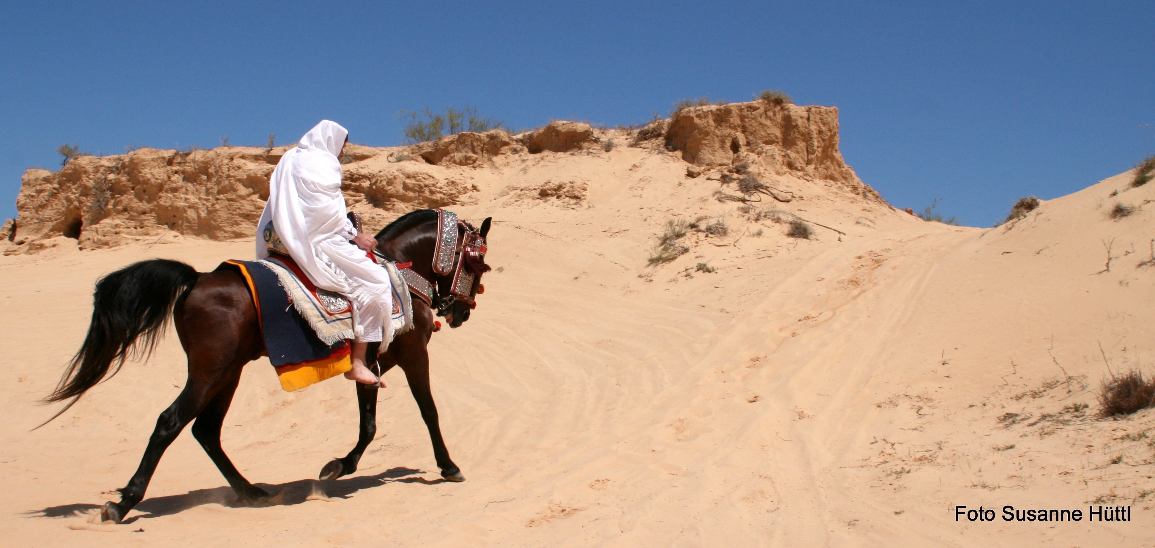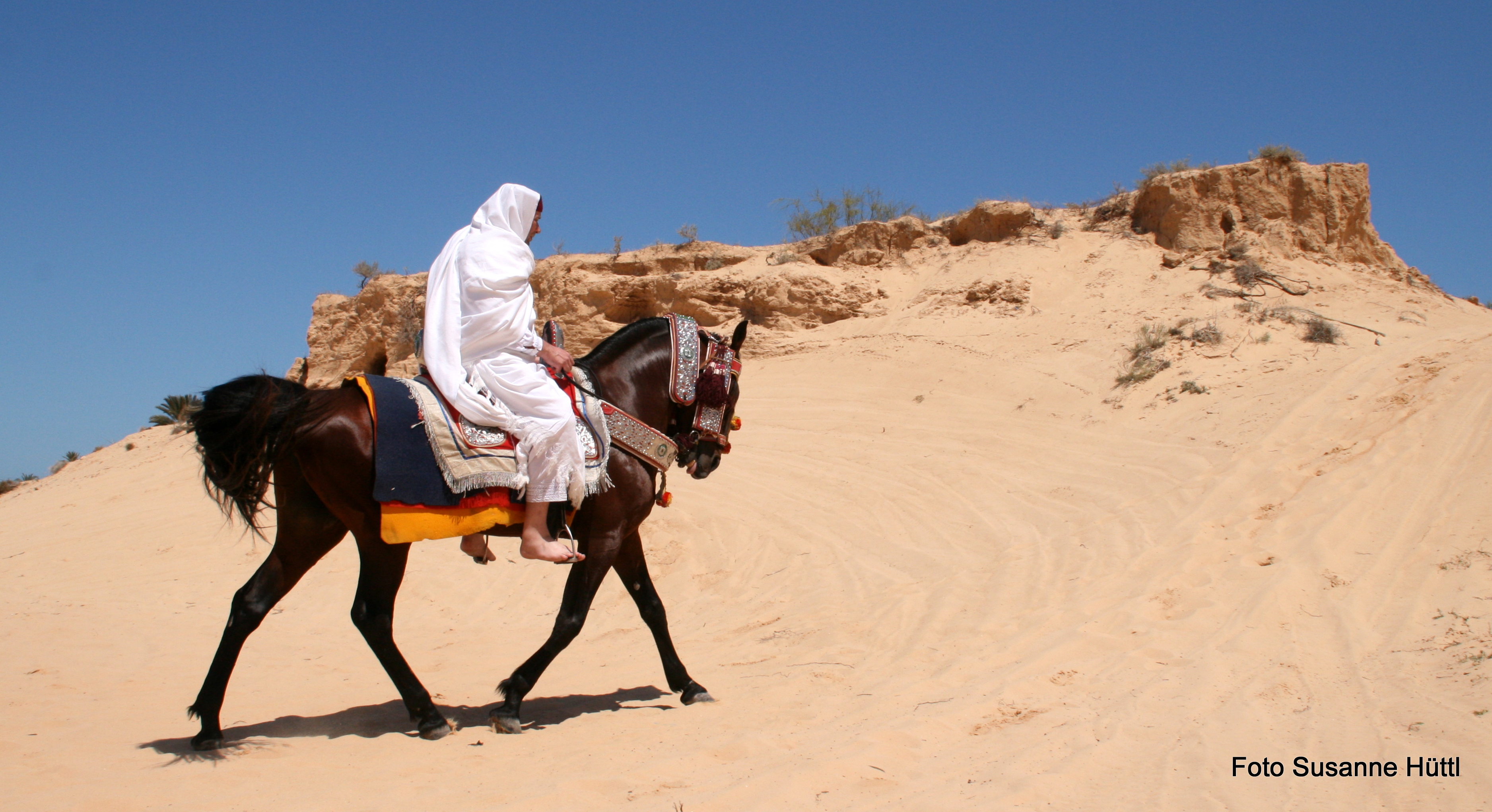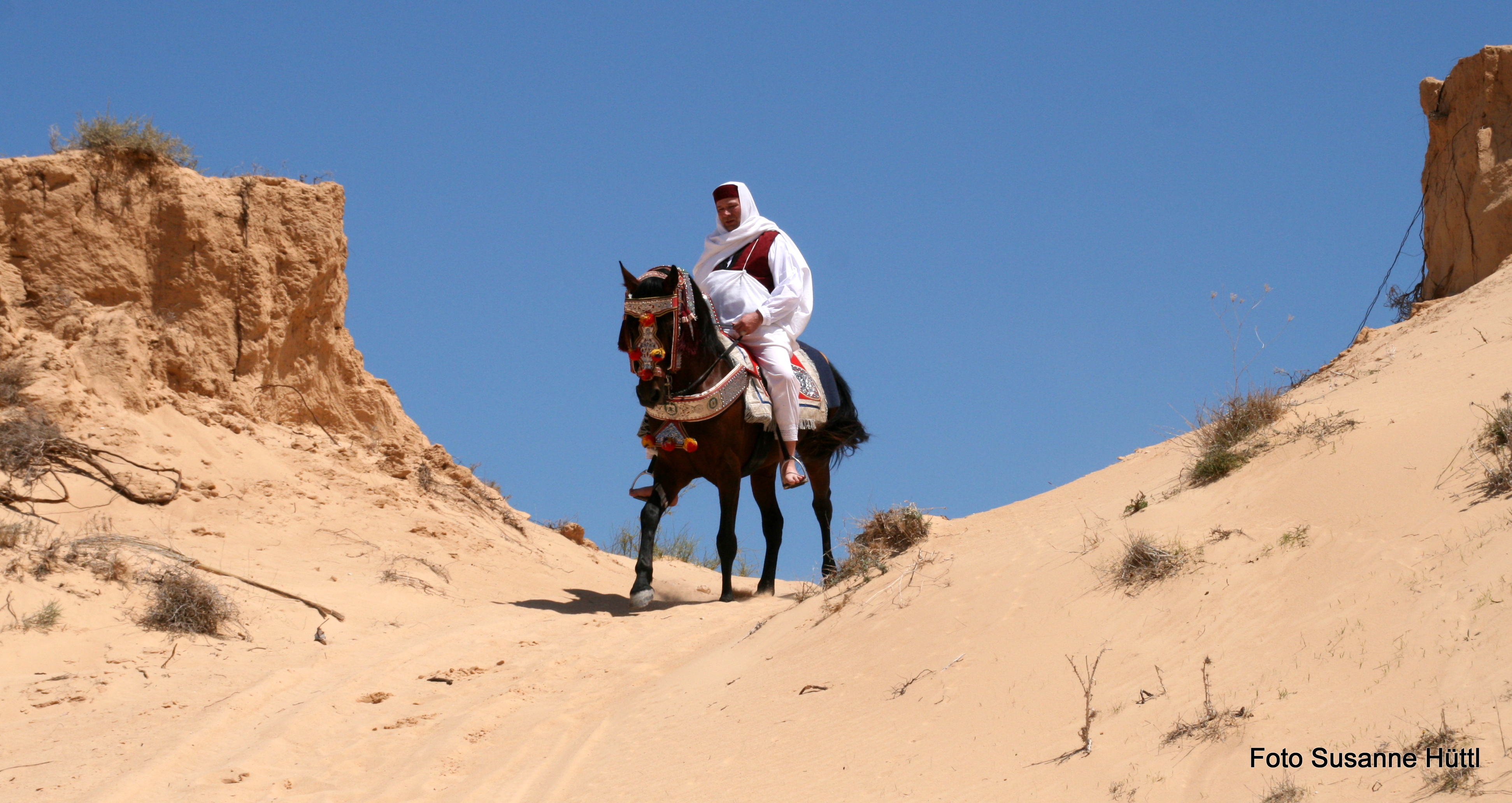 Alles ist hier authentisch: Sattel, Schmuck, Kleidung... und nicht zu vergessen: Berberhengst Bruce.