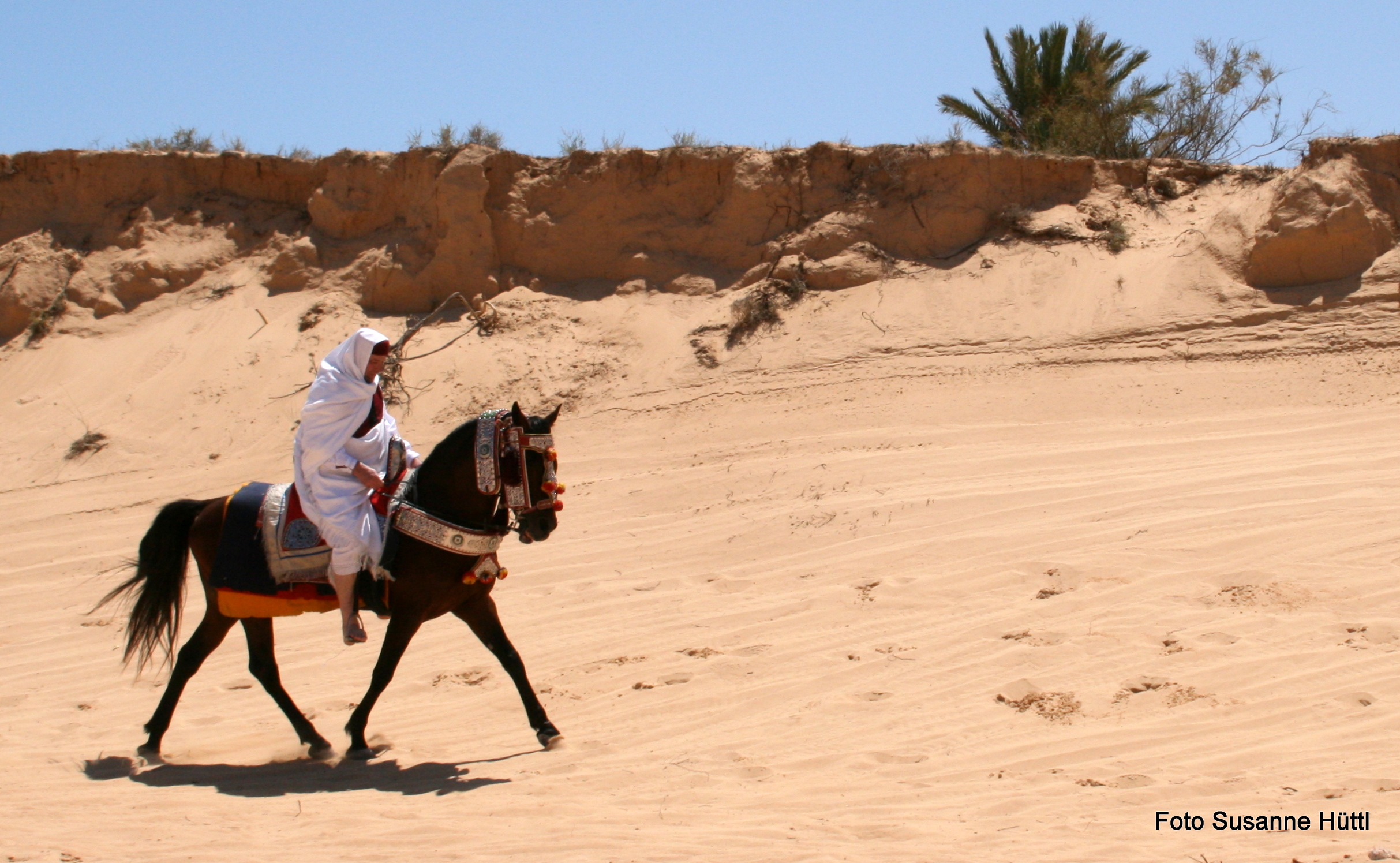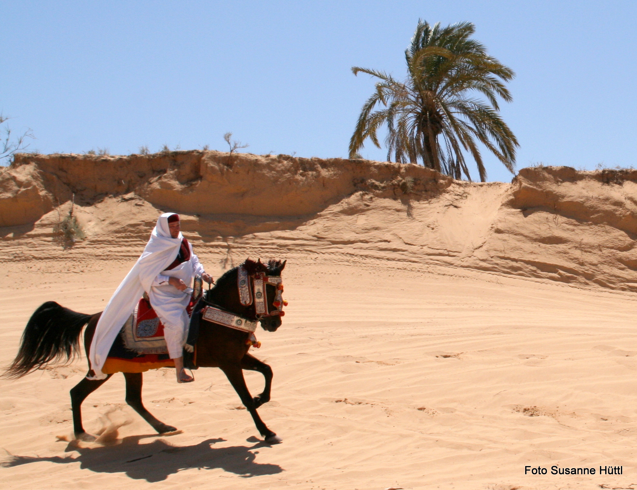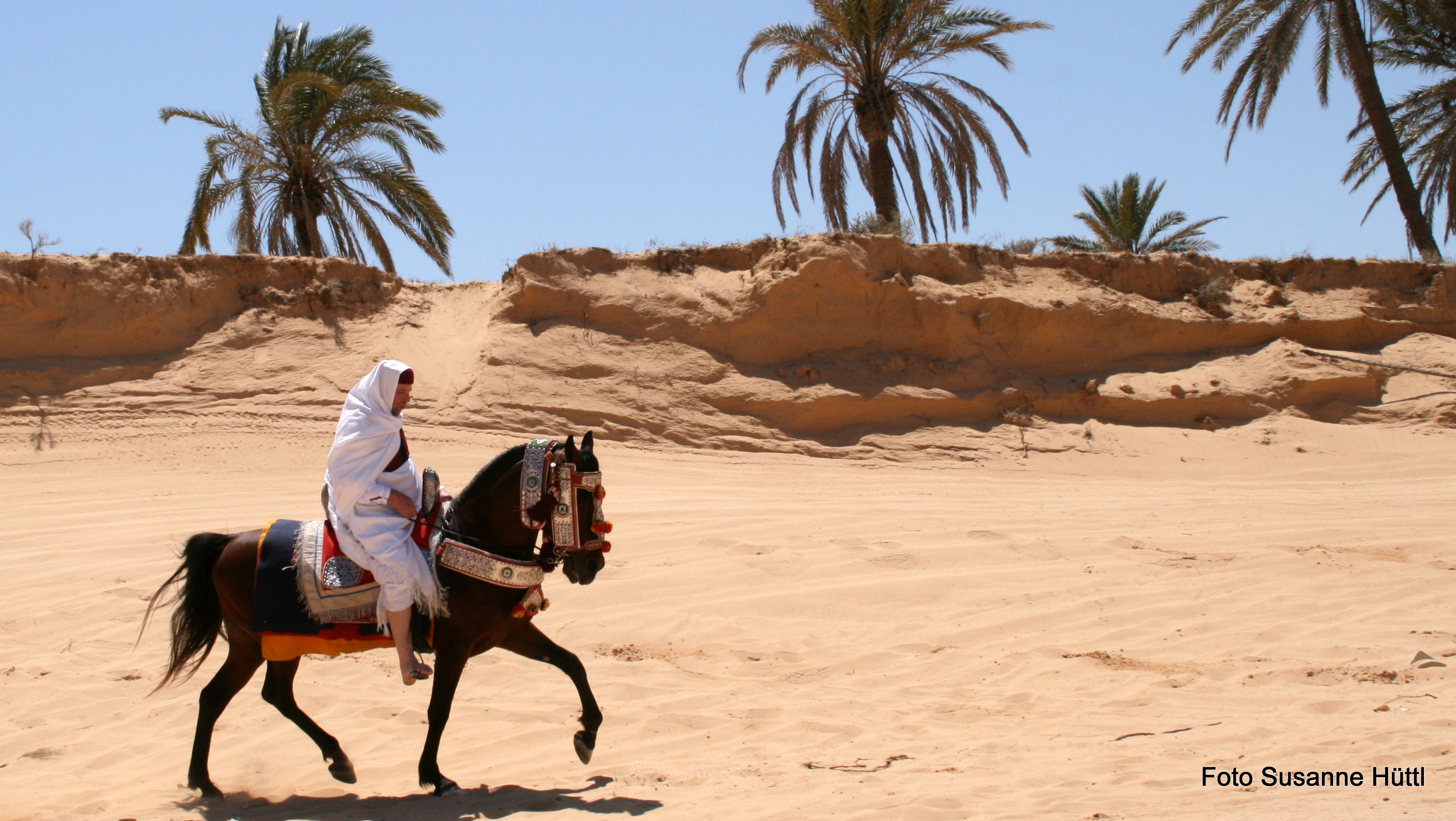 Alles ist hier authentisch: Sattel, Schmuck, Kleidung... und nicht zu vergessen: Berberhengst Bruce.