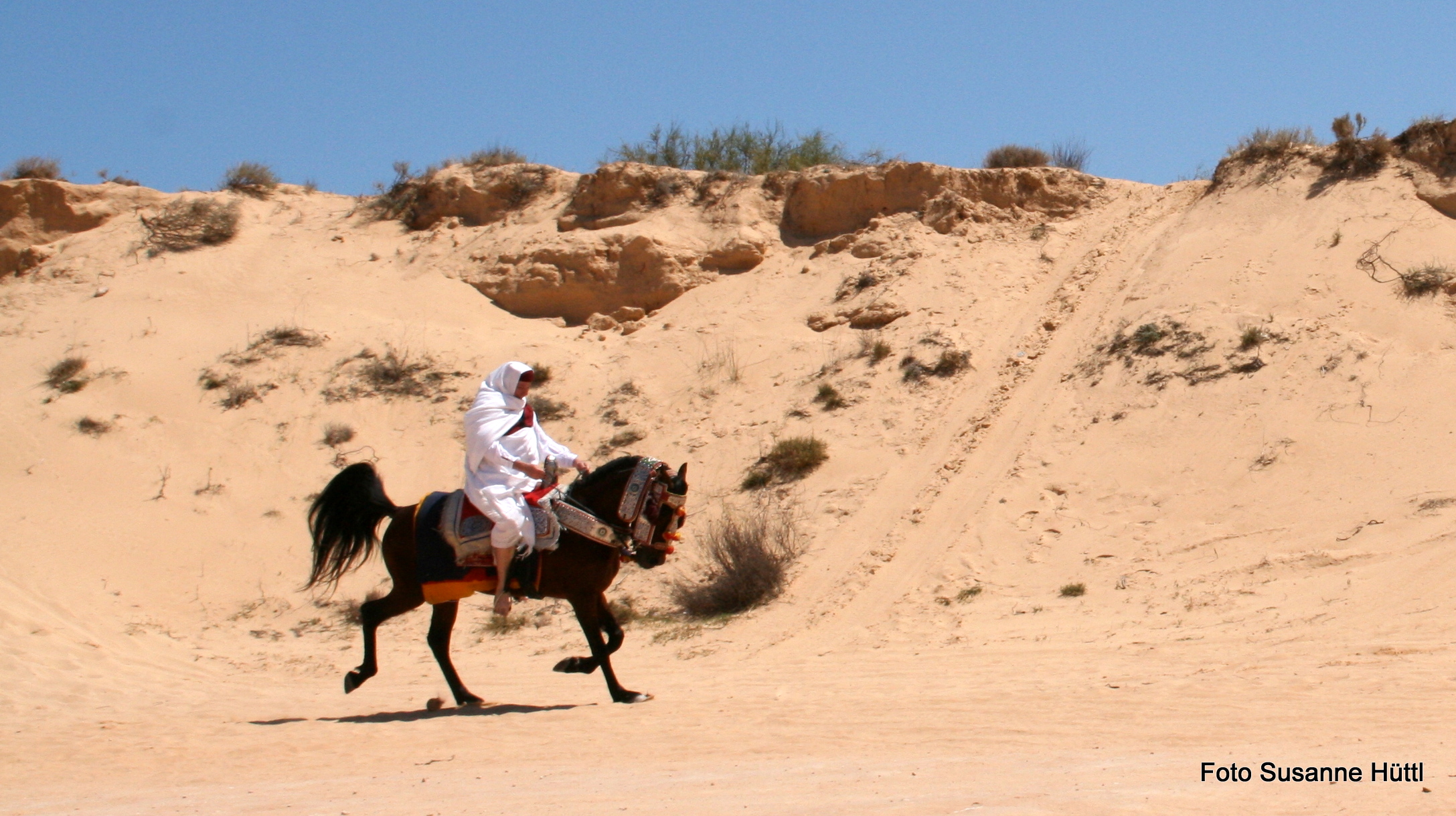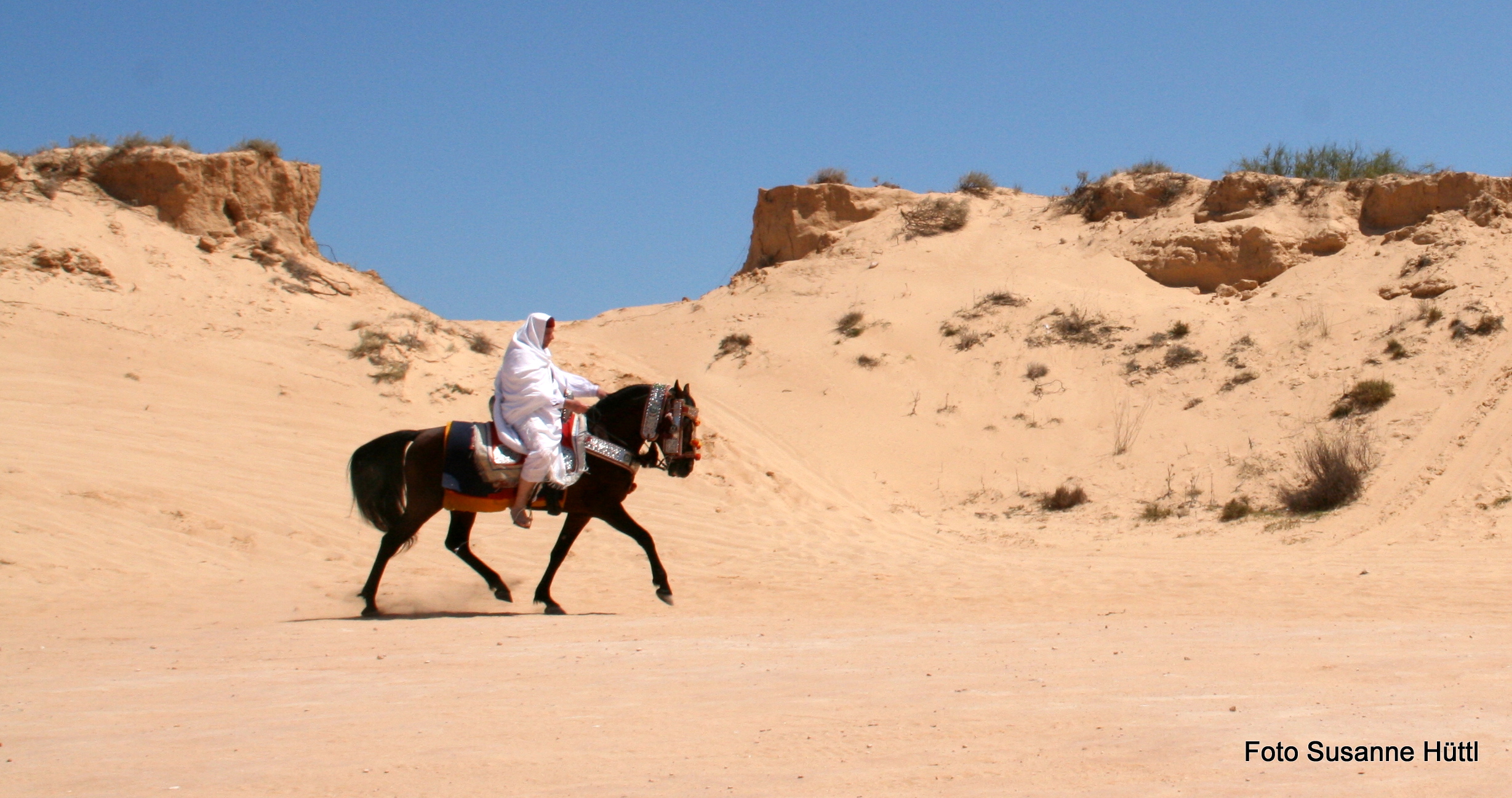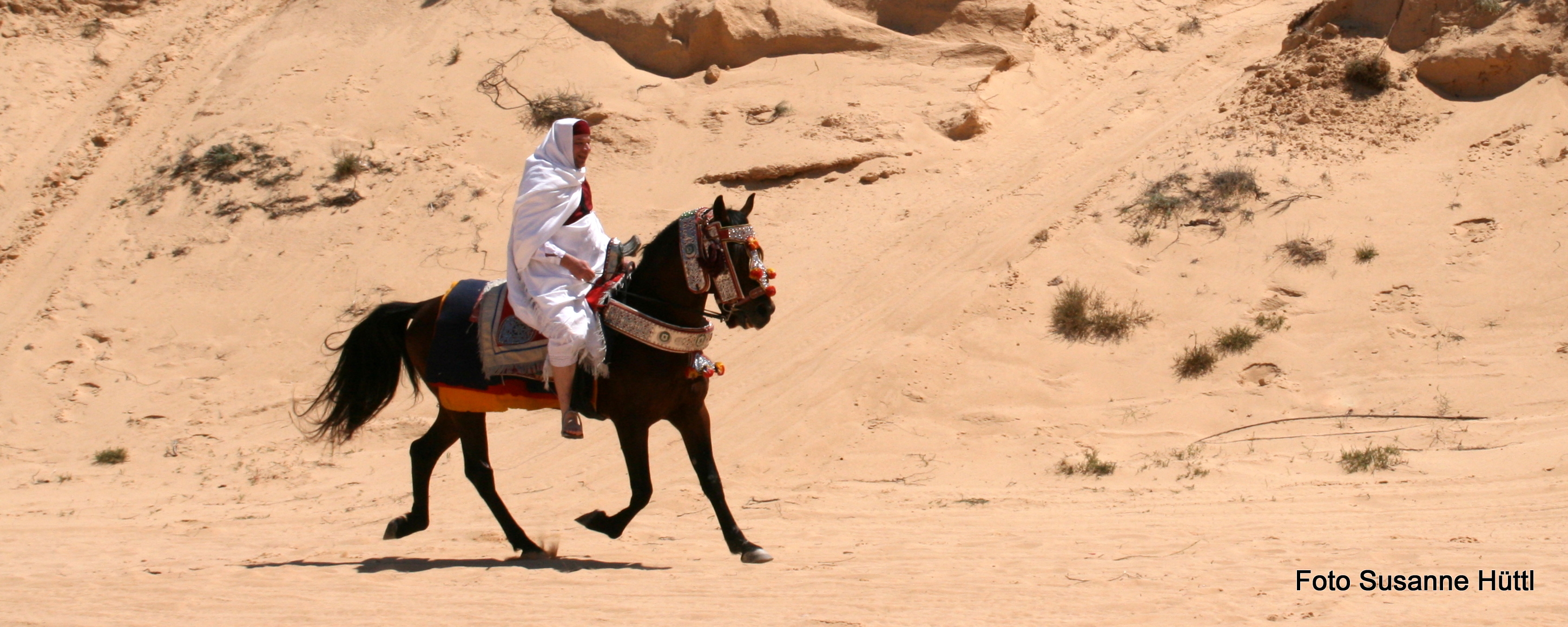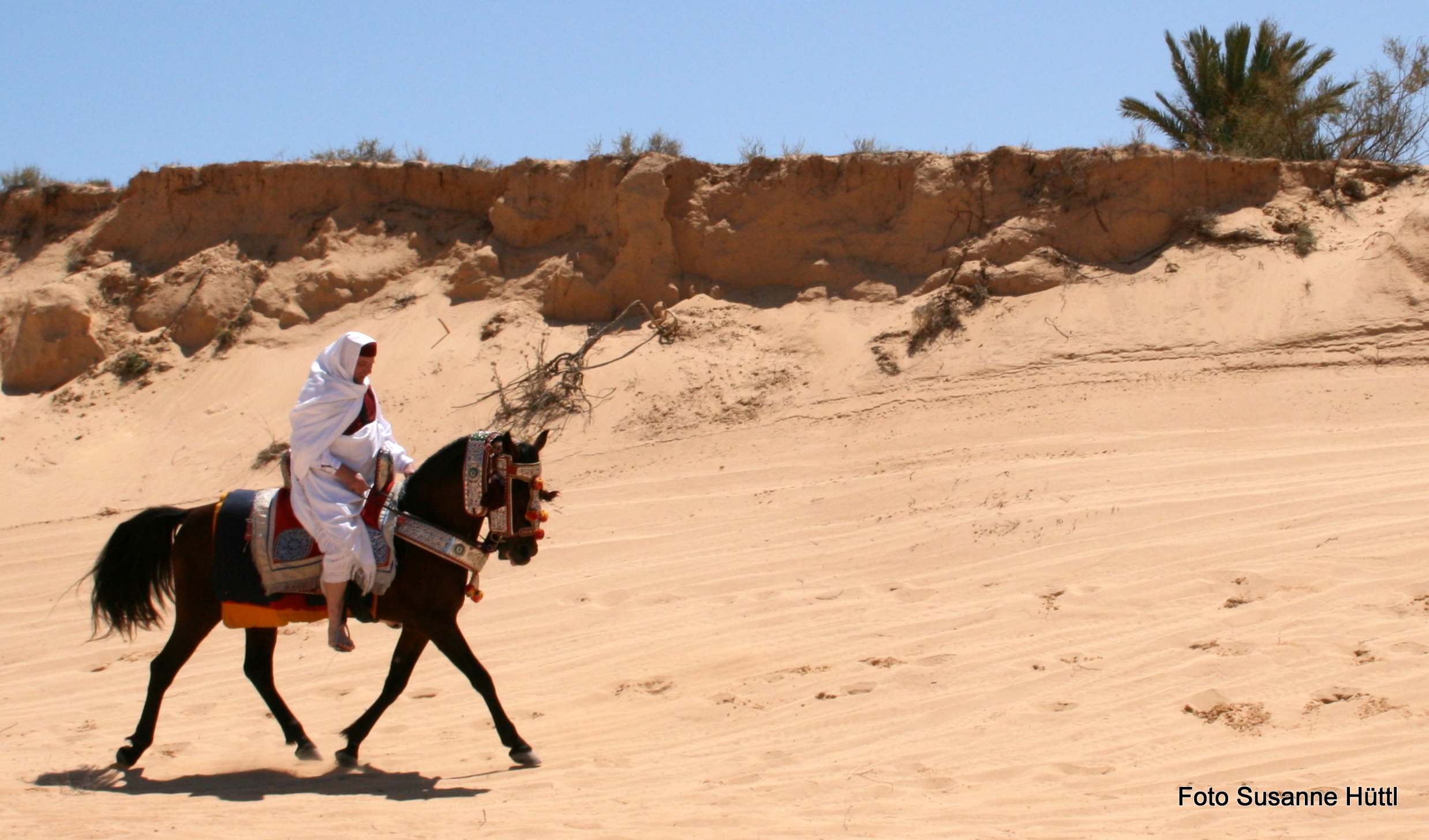 Alles ist hier authentisch: Sattel, Schmuck, Kleidung... und nicht zu vergessen: Berberhengst Bruce.